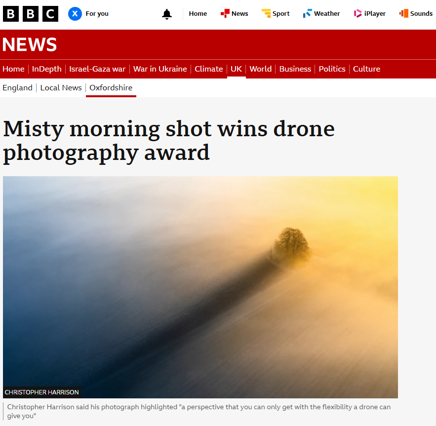 On the BBC - "Misty morning shot wins drone photography award"