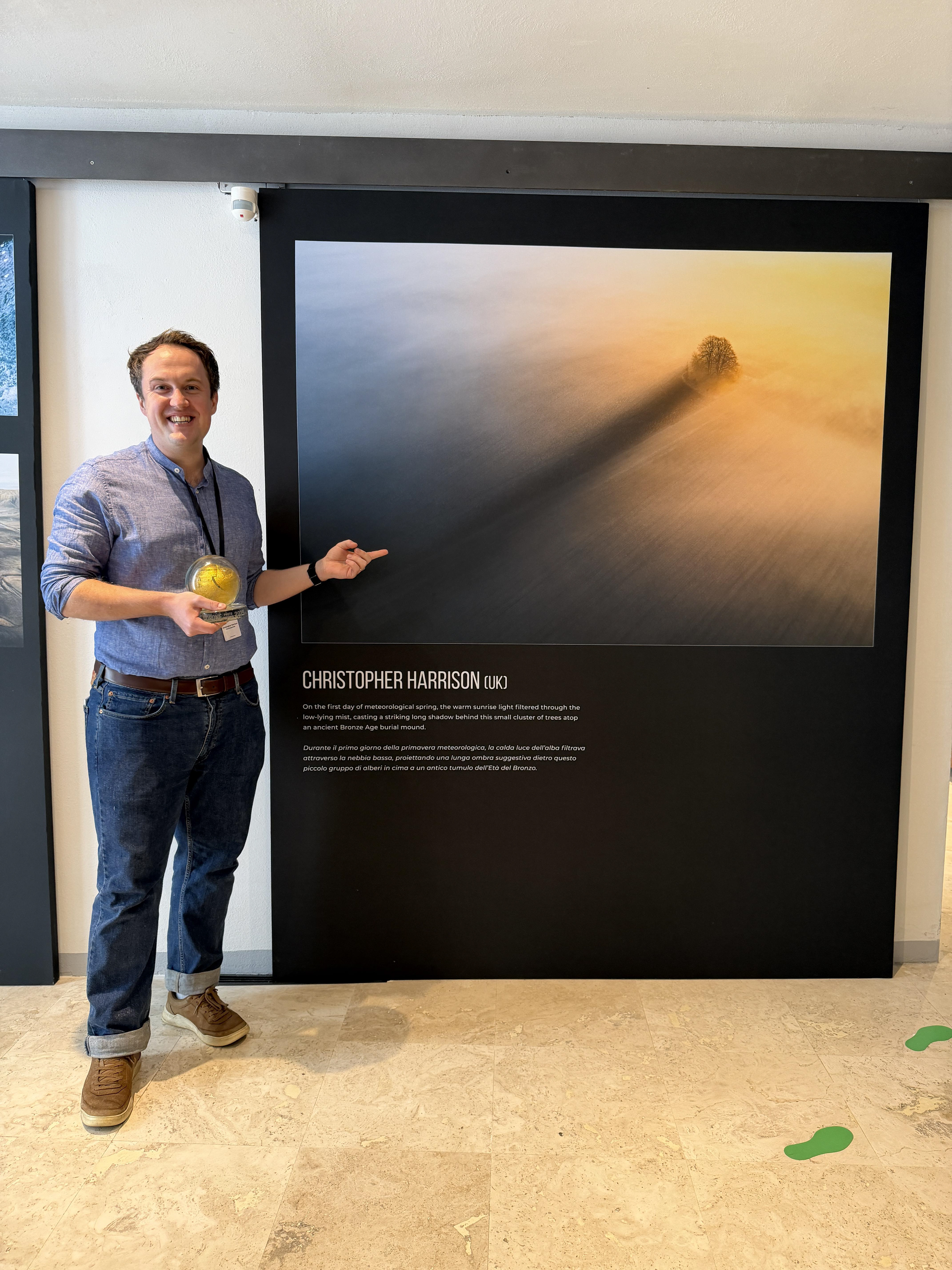 The Long Shadow transformed Brightwell Barrow, in Oxfordshire (England), into a very long shadow that lasted only a few moments at dawn. Brightwell is a circular Bronze Age barrow (burial mound) about 30 meters in diameter, surrounded by a ditch and with a small group of beeches on its summit. The photo was taken with a DJI Air 2S equipped with an FC3411 camera. The photographs selected for the various sections of the Siena International Photo Awards 2025 will be on display in Siena until November 23rd."