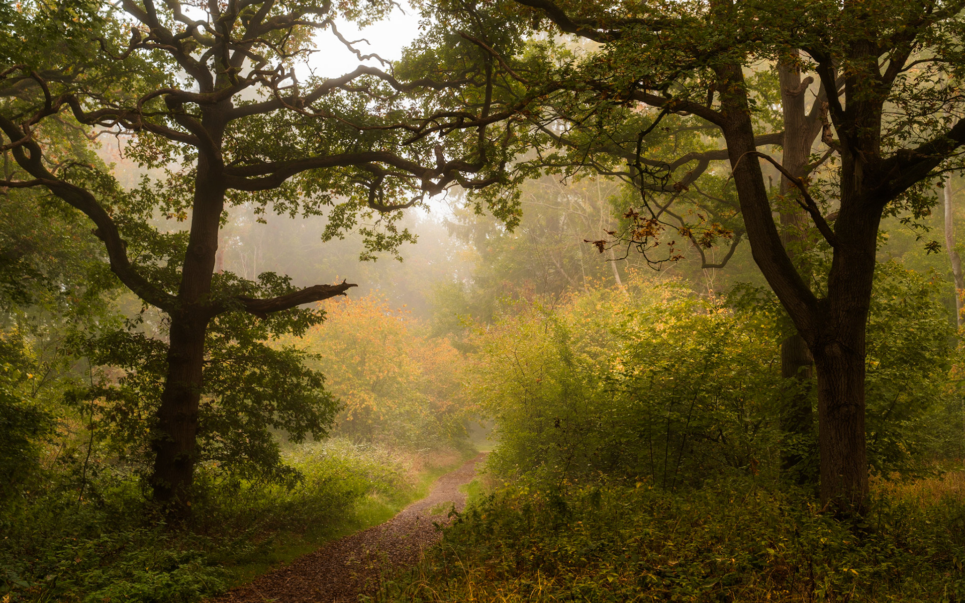 Late Summer / Early Autumn Fog, lush greens, beautiful beech trees with tons of character, Chilterns, UK