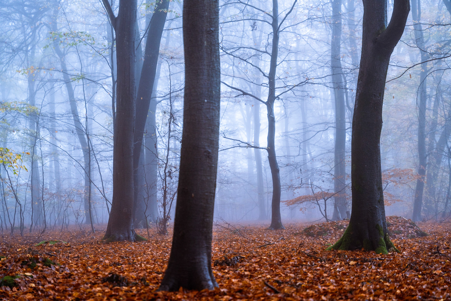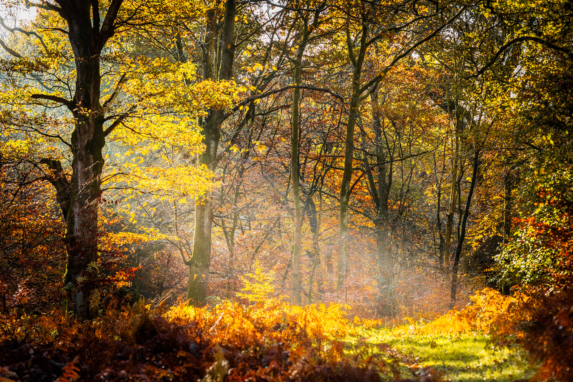 The autumn colours are spectacular in this capture from Aston Rowant woodland in the Chiltern Hills. Fog shrouds the trees giving a painterly effect to this capture.
