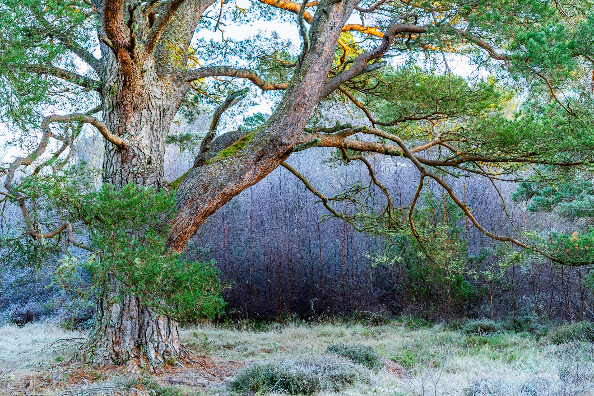 Old Pine Trees during some light mist, Cairngorms, Scotland