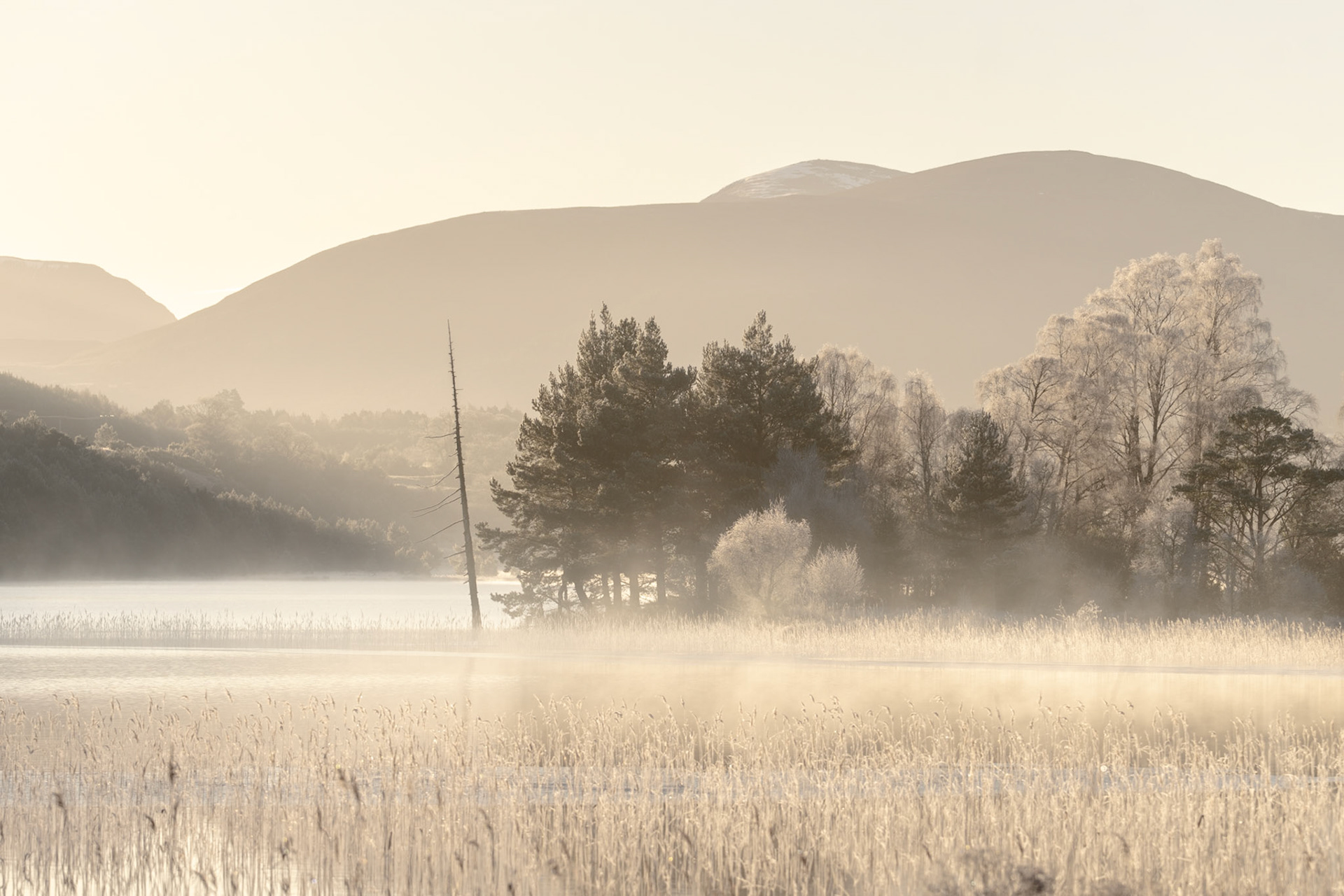 Snow covers every branch on this scene from the Scottish Highlands, along a river that feeds the famous Loch Morlich in the Cairngorms National Park. A truly winter wonderland scene.